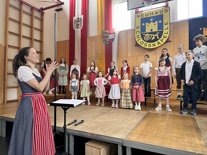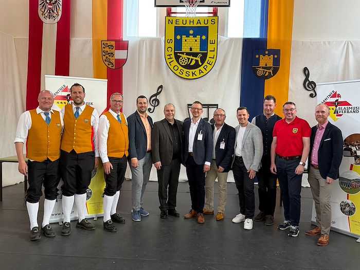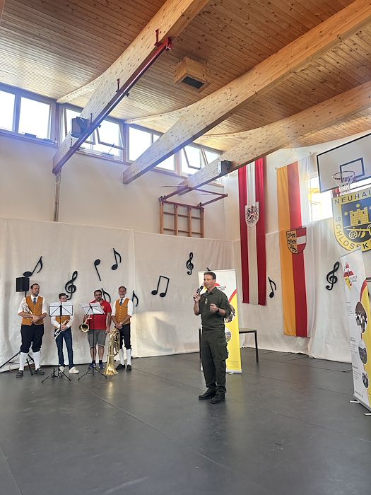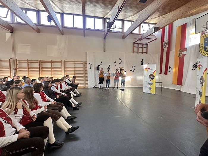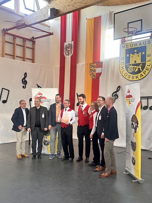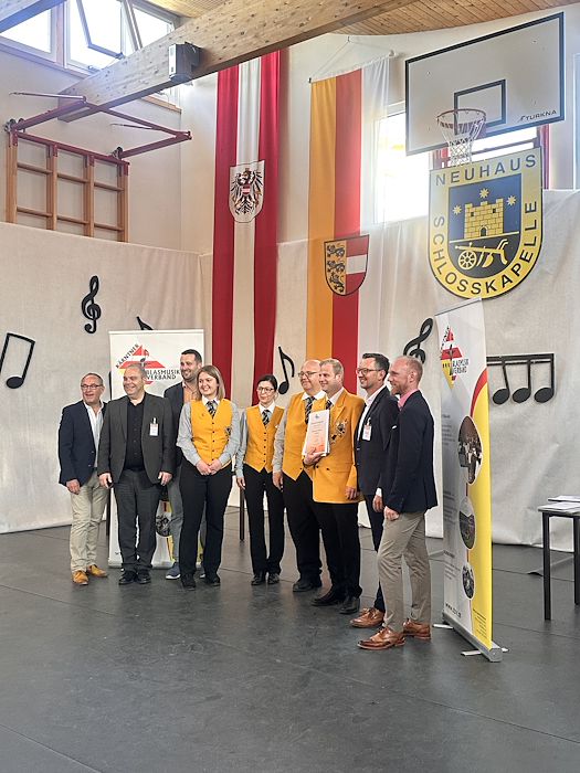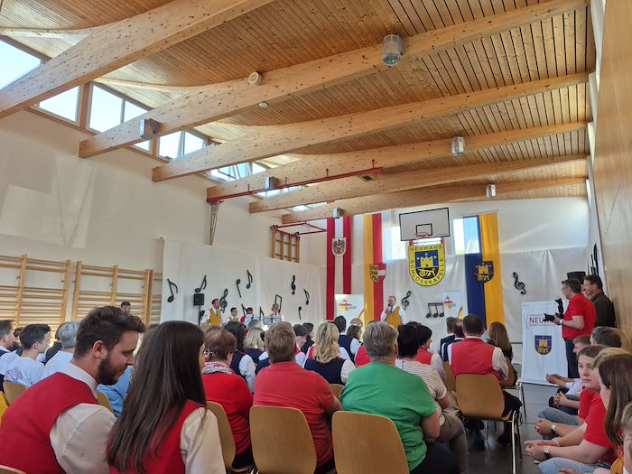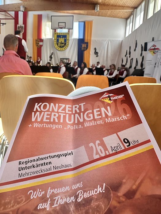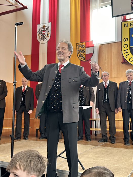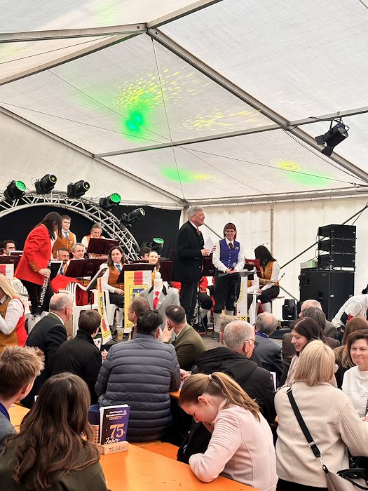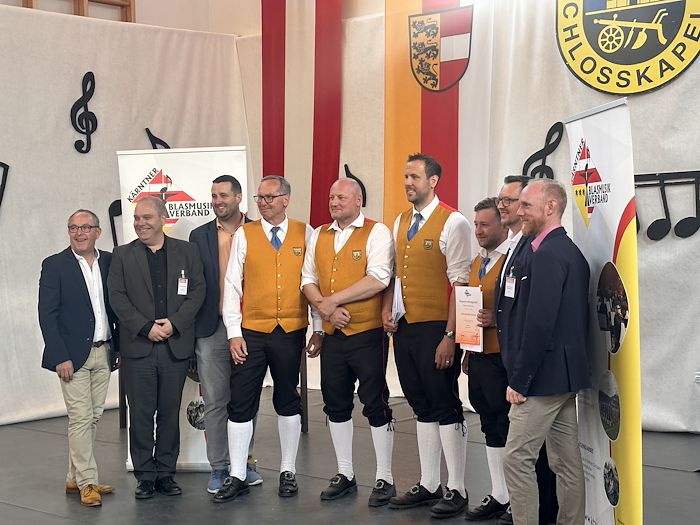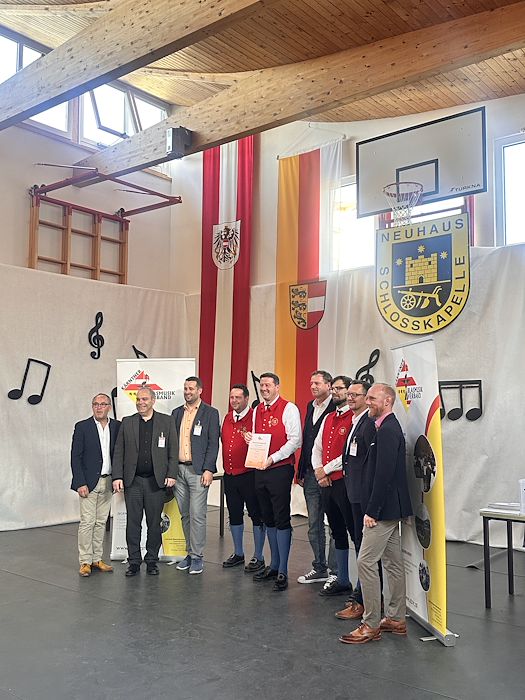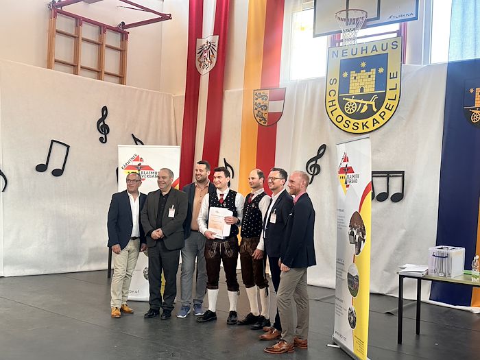 Die Schlosskapelle Neuhaus eröffnete gemeinsam mit ihrem Jugendensemble das Konzert und überzeugte mit einem abwechslungsreichen und schwungvollen Programm. Unter der Leitung von Johannes Glawischnig zeigten die Musikerinnen und Musiker ihr großes Können und sorgten für einen gelungenen Auftakt. Obmann Hannes Hirm begrüßte einige Ehrengäste im ersten Teil.